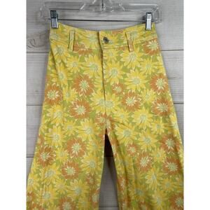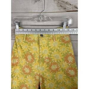 ZARA Women Jeans Size 2 Yellow Floral Print The Marine Straight Stretch Boho Hip