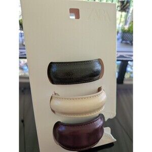 ZARA Women NEW Pack Of 3 Leather Cuff Bangle Bracelets Burgundy Green Cream Bend