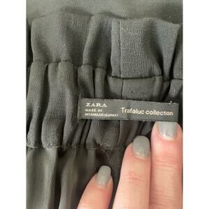 ZARA Women Paperbag Pants M Black Wide Flare Elastic Waist Boho Cottage Fairy