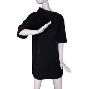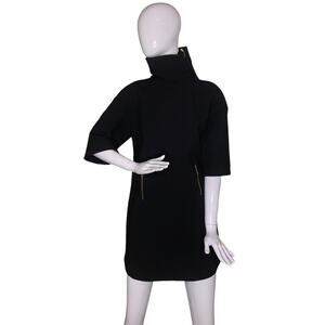 ZARA Women Pullover Mini Dress Size M 3/4 sleeve High Neck Zippers open
