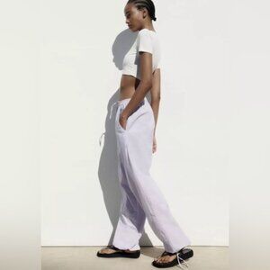ZARA Women Purple Lilac Parachute Relaxed Pants Elastic Waist 5520/7/629 MEDIUM
