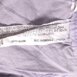 Elevate your wardrobe with these stunning purple lilac parachute relaxed pants from Zara. These pants are perfect for any occasion, whether you're traveling, going to a party, or just running errands. Made from 100% cotton, these pants are machine washable and are designed for comfort. Featuring an elastic waist and adjustable waist, these pants have a high rise and wide-leg fit, making them perfect for any season - summer, fall, or spring. The solid pattern and flat front design add a grunge and 90s vibe to your outfit. These pants are a must-have for any fashion-forward woman