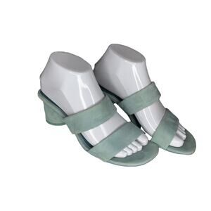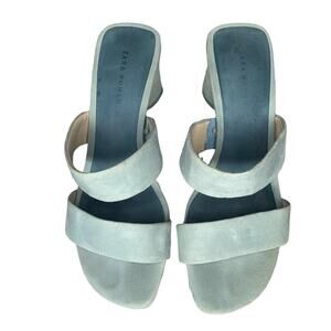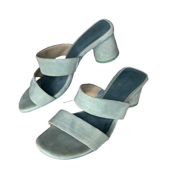 ZARA Women Sandals Size 6.5 (37) baby blue chunky 2.25" heels