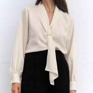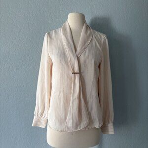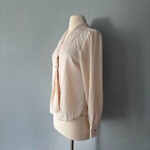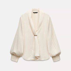 ZARA Women Size XS Ivory Long Sleeve Blouse Metallic Stirpped
