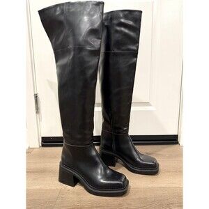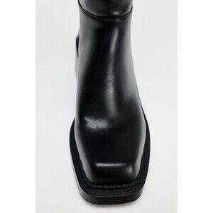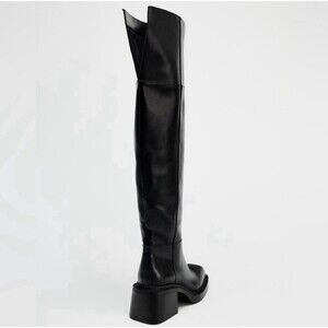 ZARA Women Square Toe Over-The-Knee Thigh High Leather Boots Black