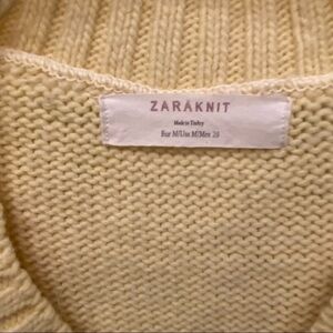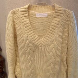 ZARA Women Yellow Wool Alpaca Blend V-Neck Cable Knit Sweater Size Medium