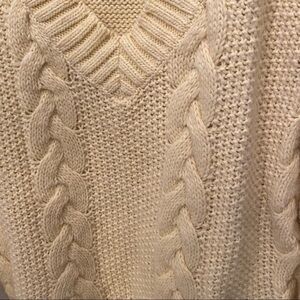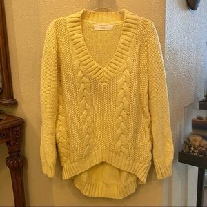 Pre-owned in great condition with no rips or stains. Women’s warm and cozy wool and alpaca blend v-neck high-low sweater. Nice cable knit. Comes from smoke and pet free home.