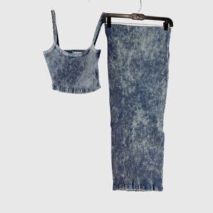 ZARA Women’s 2-Piece Ribbed Tie Dye Velvet Set Blue Crop Top & Maxi Skirt M