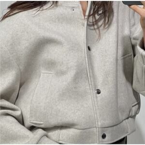 zara jacket, zara coat, wool bomber, cropped jacket, women’s outerwear, minimalist fashion, neutral jacket, fall winter coat, ribbed hem jacket, casual chic coat, NWT ZARA, oversized bomber, beige wool coat, street style jacket, trendy women’s fashion