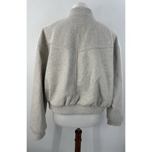ZARA Womens 2XL Gray Bomber Jacket Wool Blend Snap Front Ribbed Collar