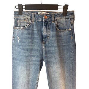 ZARA Womens 6/28 Distressed Cuffed Jeans Size Blue Denim Mid-Rise