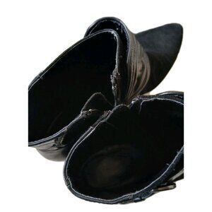 ZARA Womens 7.5 Suede Quilted Leather Ankle Black Pointed Toe Western Booties