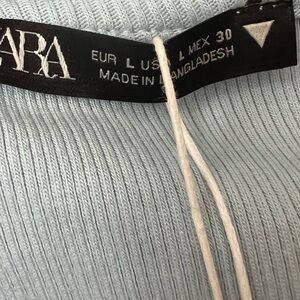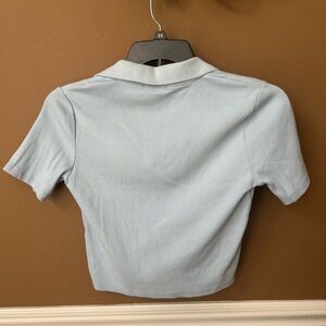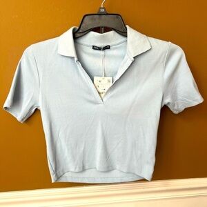 ZARA Women’s Baby Blue Ribbed Collared Crop Top Size Large Polo