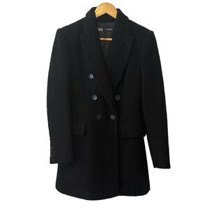 ZARA Women’s Black Bouclé Wool-Blend Double-Breasted Peacoat Jacket Coat Size M