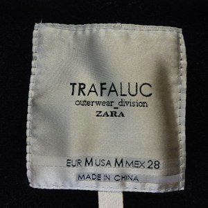 ZARA Women's Black Coat MEDIUM Formal Business Coat Open Front High Neck Cozy