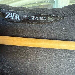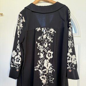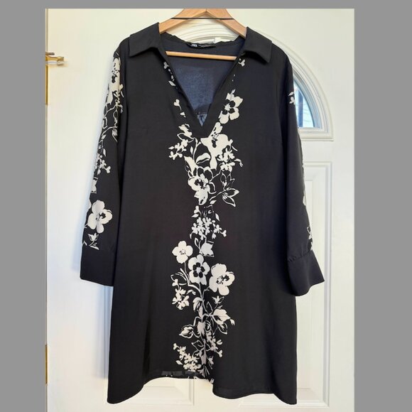 ZARA Womens Black Long Sleeve Minidress/Shirt w White Floral Details, Size:XL