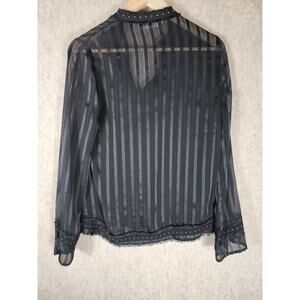 ZARA Women's Black Sheer Embellished Striped Night Out Oversized Fit SZ XS