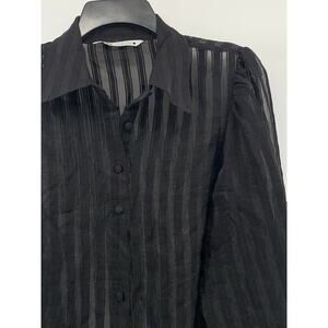 ZARA Women's Black Sheer Striped Regular-Fit Button-Up Long Puff Sleeve Top SZ L