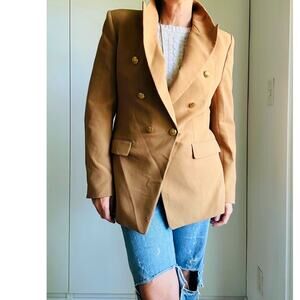 ZARA Womens Blazer Size large Carmel Double Breasted Blogger Fave Classic Fall