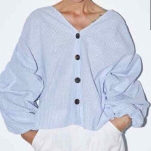 * Zara voluminous sleeve striped button up top