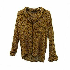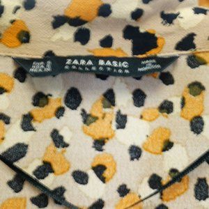 ZARA Women's Brown Black Blouse SMALL Animal Collared Long Sleeves Button Front Feature- Button front, Collared, Long Sleeves, One Side Chest Pocket, Animal Print, Leopard print, Button clos