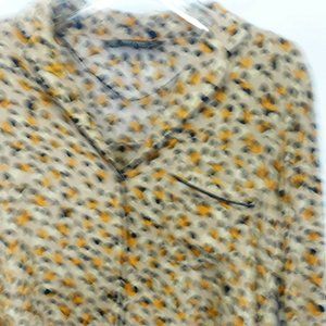 ZARA Women's Brown Black Blouse SMALL Animal Collared Long Sleeves Button Front