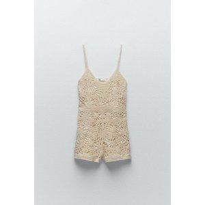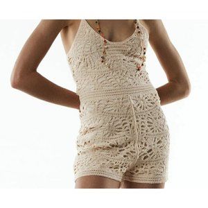 ZARA Womens CROCHET Romper M PLAYSUIT LACE MACRAME CREAM ECRU Tank Sleeveless