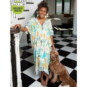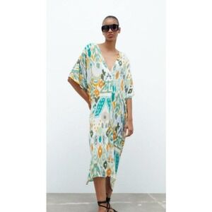 ZARA Women's Cat Eye Multicolor Metallic V Neck Boho Kaftan Blogger Favorite Oversized Resort Vacation
