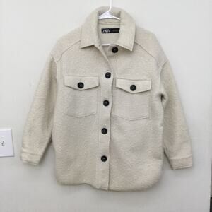 ZARA Women's Cream Oversize Soft Shirt Jacket Sz XS Fits up to Medium