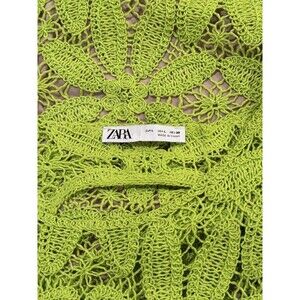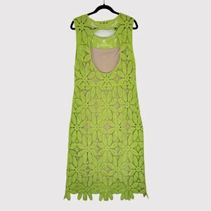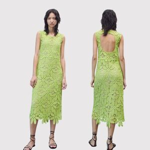 ZARA Womens Dress Green Macrame Midi Floral Crochet Lace Tank Cutout Back Large