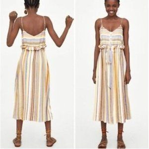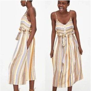 "ZARA Womens Dress linen Sze M stripped NWT draw string holiday summer casual