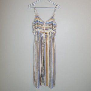 ZARA Womens Dress Linen Sze M stripped draw string holiday summer casual