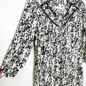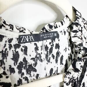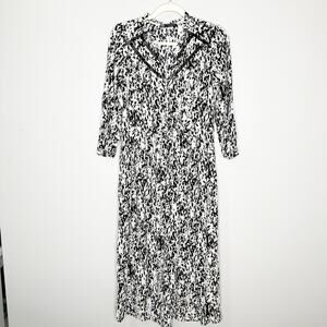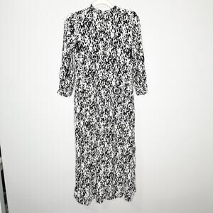 ZARA Womens Dress V-Neck 3/4 Sleeve Midi Length Splatter Pattern Black White S