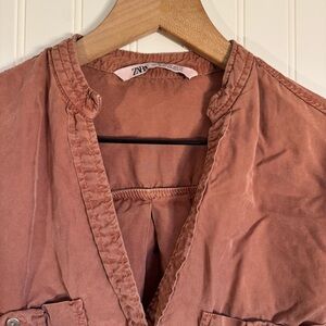 ZARA Women’s Dusty Rose Button Down Long Sleeve with Pockets Size XS