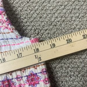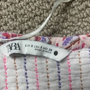 ZARA Womens Jacket Size Small Cream Pink Printed Quilted Vest Sleeveless V-Neck