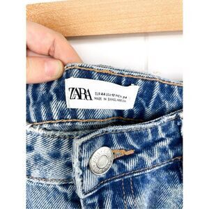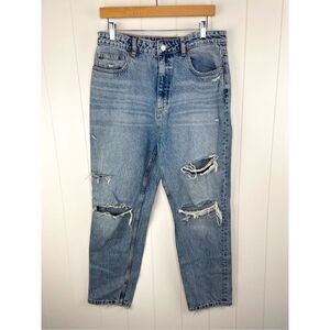 ZARA Womens Jeans Blue Denim Classic Mom Fit Distressed Straight Leg Size 12