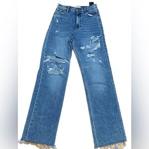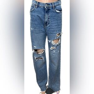 Zara ripped jeans, distressed denim, grunge jeans, 90s style, Y2K fashion, streetwear, wide leg denim, women’s size 4 jeans, Zara Egypt jeans, raw hem, festival style