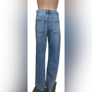 Gently pre-owned with intentional heavy distressing and frayed hem as part of the design.