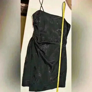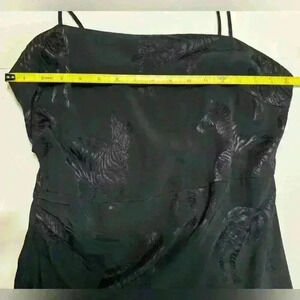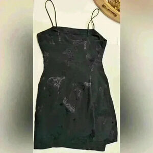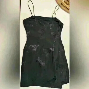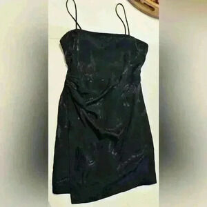 SUPER CUTE LITTLE BLACK DRESS BY ZARA....VERY COOL SHINY METALLIC/IRRIDESCENT LIKE ZEBRAS ALL OVER, SATIN/ SILKY TYPE FEEL AND LOOK, BACK ZIP, SIDE RUCHING, SPAGHETTI STRAPS. Such a cute dress! Wear it out or on vacation, it’s perfect for so many things!