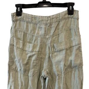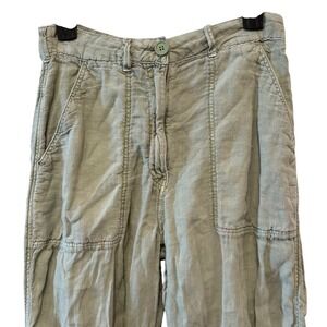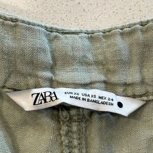 ZARA Women's Light Green 100% Linen Utility Pants Wide Leg Cropped Size XS