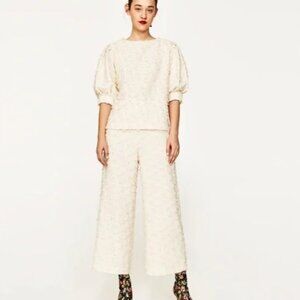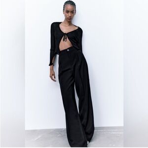 Keywords: ZARA pants, linen pants, utility pants, wide leg, cropped, high rise, patch pockets, light green, summer pants, casual, relaxed fit, button fly, button closure