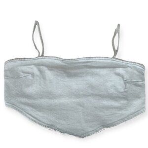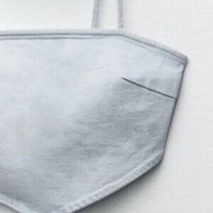 Zara Womens Light-wash Denim Bandana Cut Zipper Back Crop Top Blouse Sz Large