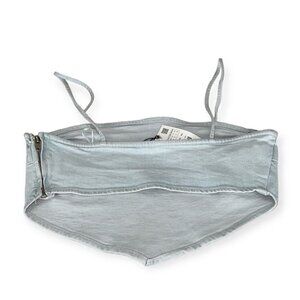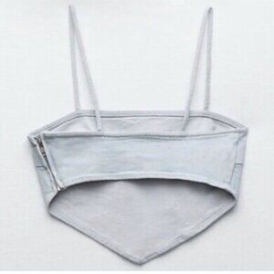 ZARA Womens Light-wash Denim Bandana Cut Zipper Back Crop Top Blouse Sz Large