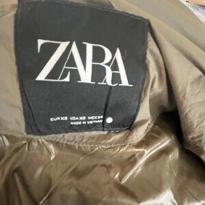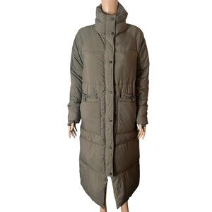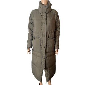 ZARA Women’s Long Puffer Coat XS Taupe Quilted Down Jacket High Neck Winter Warm