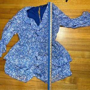 ZARA Womens Long Sleeve Ruffle Romper One Piece Blue Floral Size M V-neck (E)5