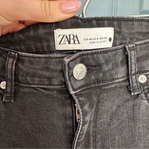 ZARA Women's Mid Rise Skinny Boot Cut Washed Black Denim Jeans