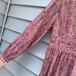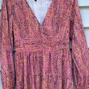 ZARA Women’s Multicolor Printed Long Sleeve V Neck Dress Size Large
