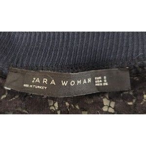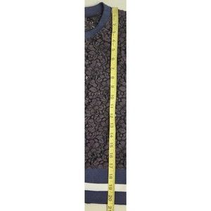 ZARA Women's Navy Blue Lace Sporty Striped Long Sleeve Crew Neck Sweater Small