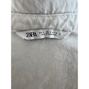 ZARA Women's Off White Denim Button Classic Trucker Jacket Long Sleeve S Small