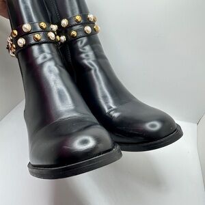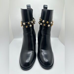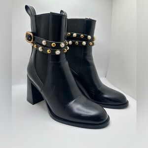 ZARA Women’s Pearl Block Heel Ankle Boots Black Sz EU 35